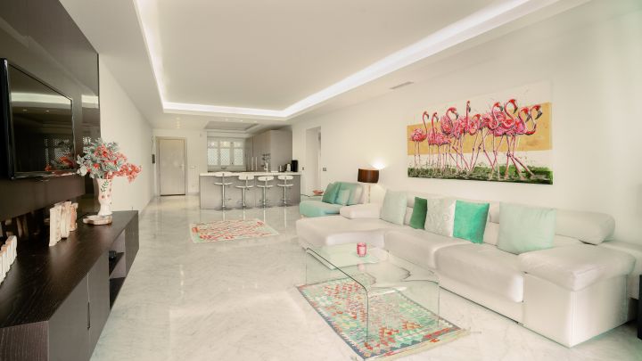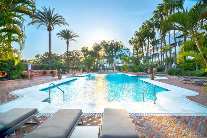 The apartment enjoys direct access from its sunny terrace to the communal swimming pool and landscaped gardens, offering seamless indoor-outdoor living. It also includes a private underground garage and storeroom, making it an ideal holiday home or investment property on Marbella’s Golden Mile.